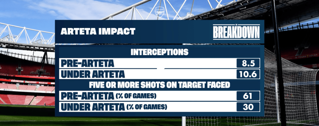 The increase in interceptions from 8.5 under Emery to 10.6 may feel like a soft stat, and it is, but interceptions are a product of good defensive structure, ability to trap opponents, and high work rate – 3 things that lead and suggest better defensive output.
