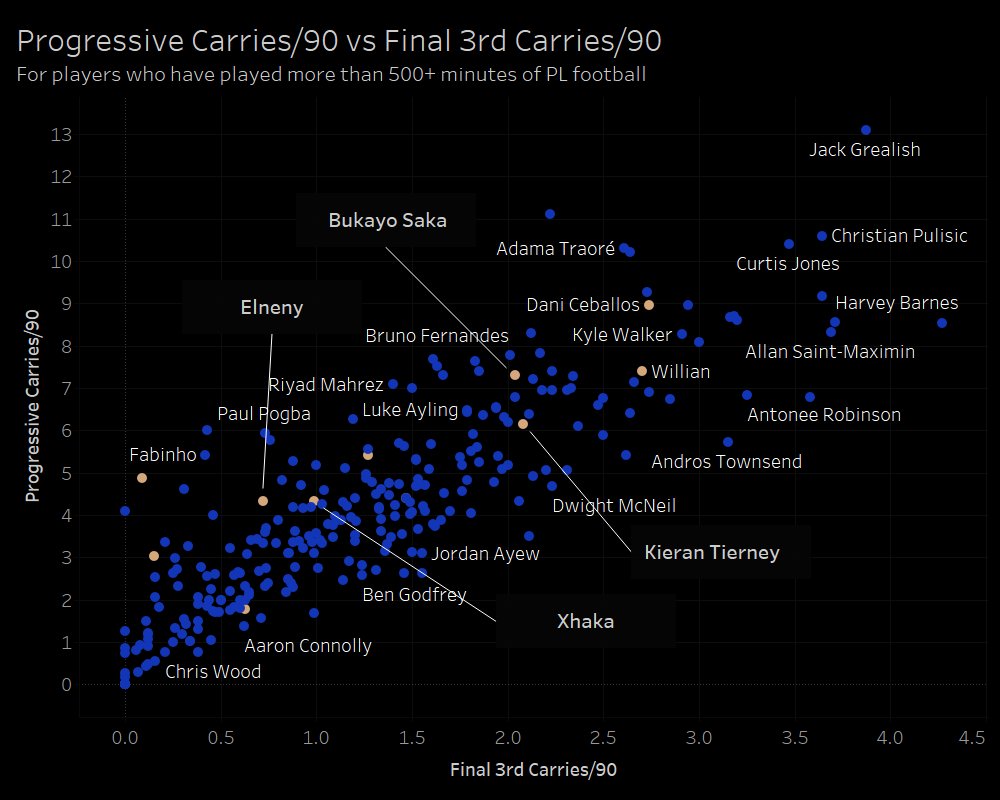 Which match did Arsenal struggle to get things going against? Brighton! Yes, Brighton makes things difficult in their own way with their mid-block, but Xhaka’s intent versus Chelsea to be positive with his possession and drive the team forward is a huge difference maker.