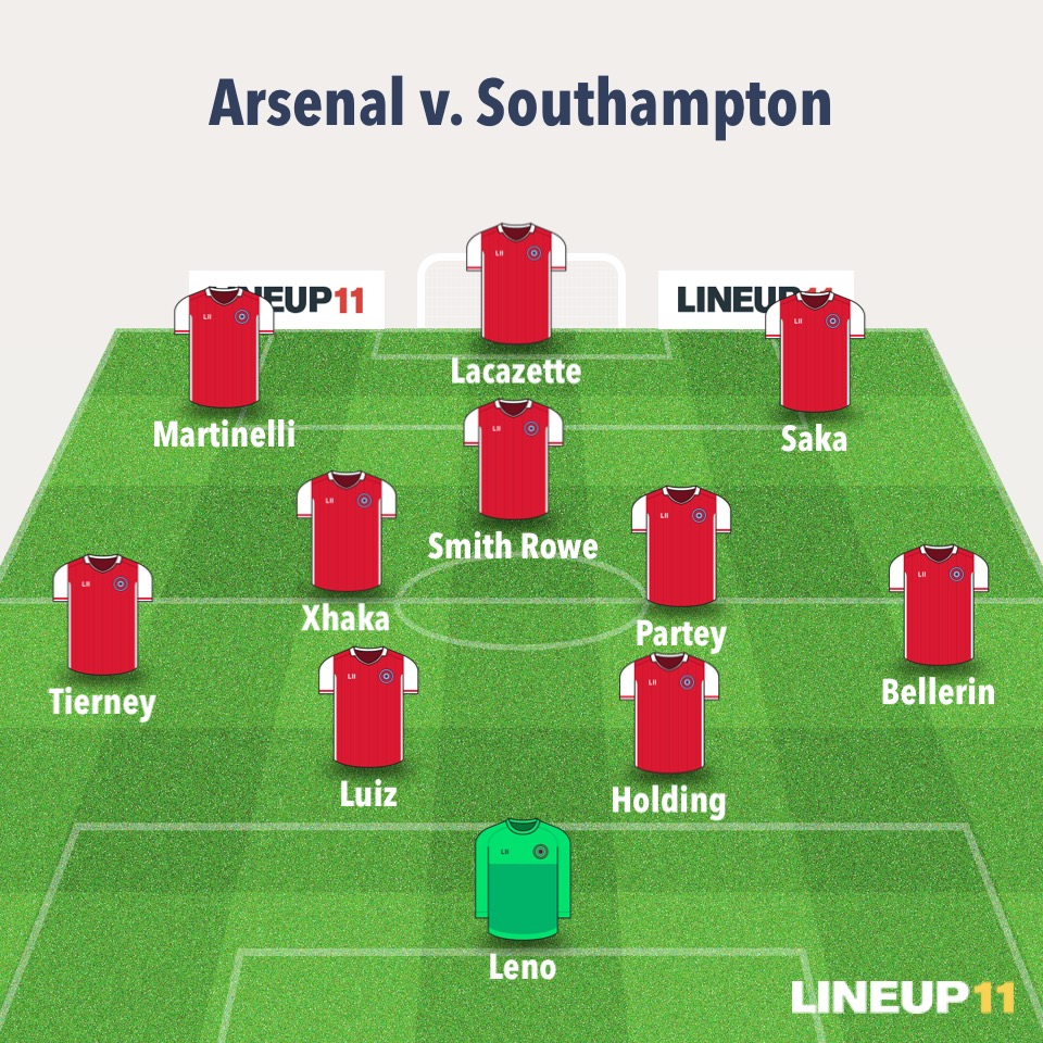 Up top — Martinelli, Lacazette, Saka. The only surprise here would be Martinelli, and that’s not much of a surprise given Aubameyang’s situation, as discussed above. Last time, that trio led the line with Smith Rowe behind, Arsenal pressed Chelsea exceptionally well. Hopefully with Partey causing Southampton to rethink how much they press, we can see Arsenal turn the tables on the Saints and apply pressure to them.